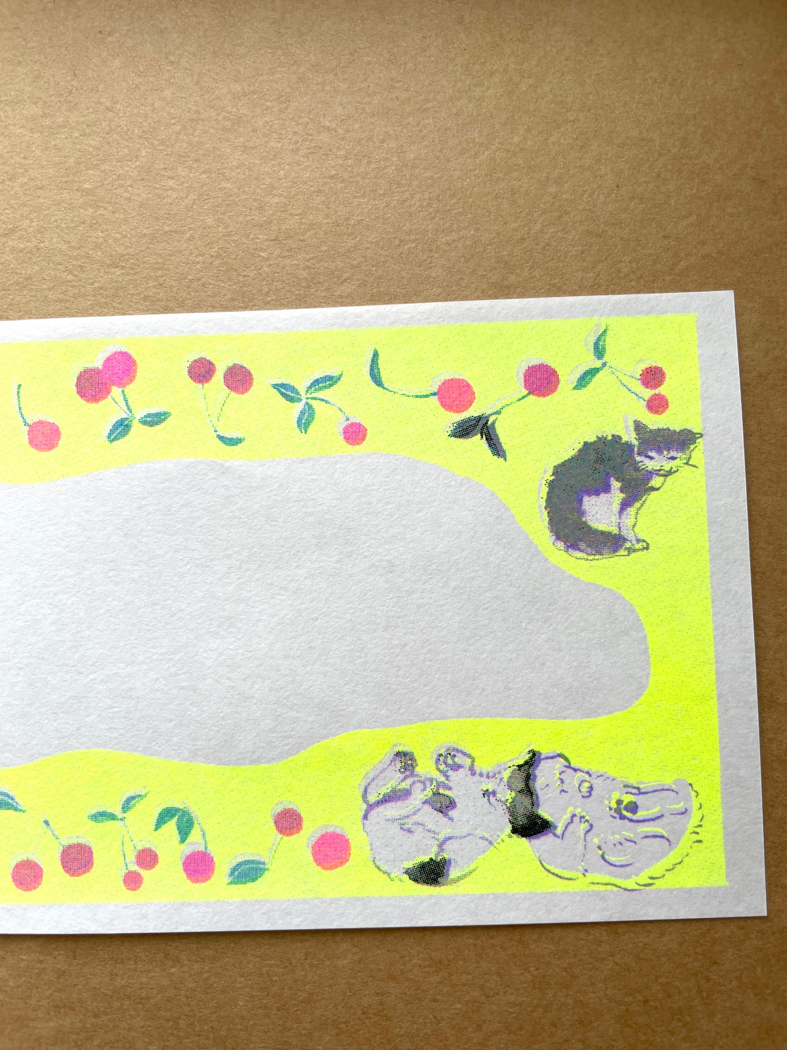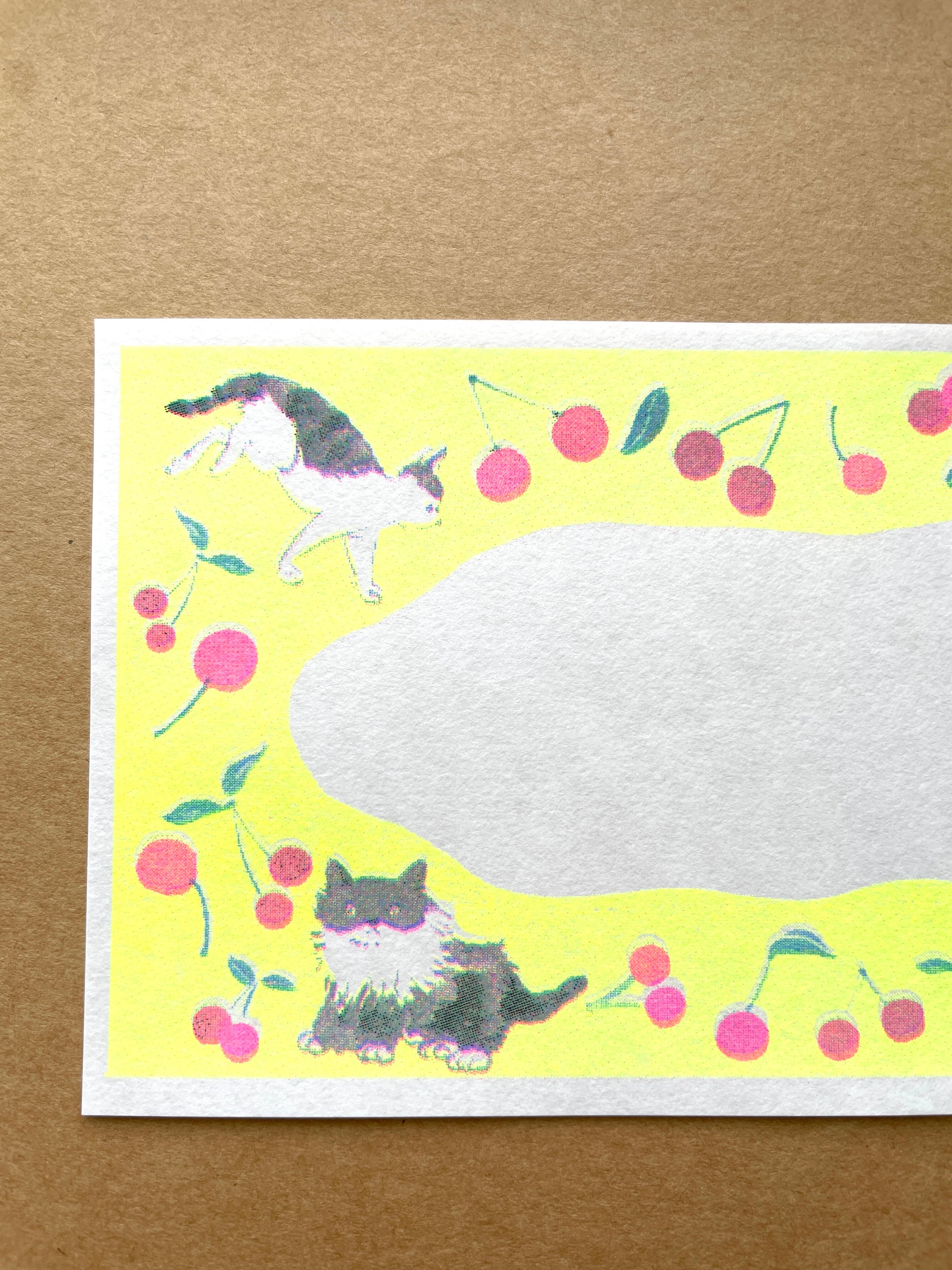気ままなコネコちゃんとサクランボの一筆箋です。