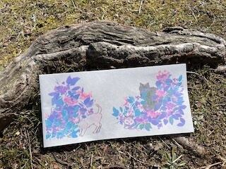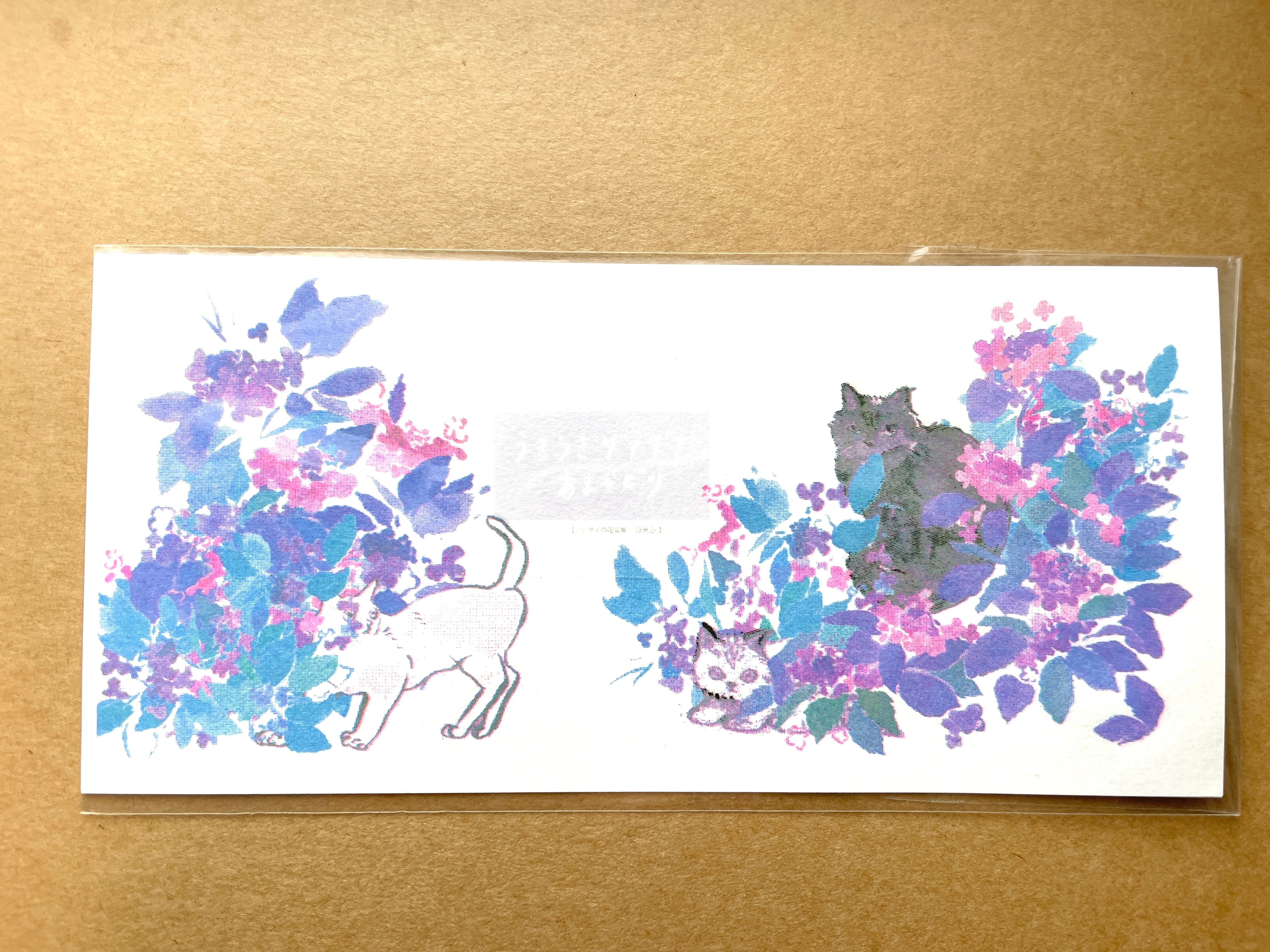 一筆箋 『うきうきザアザアあまやどり』 ネコとアジサイ